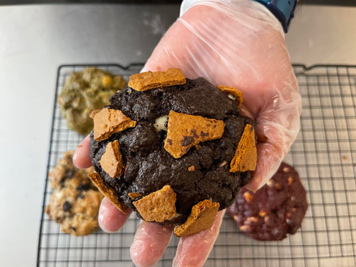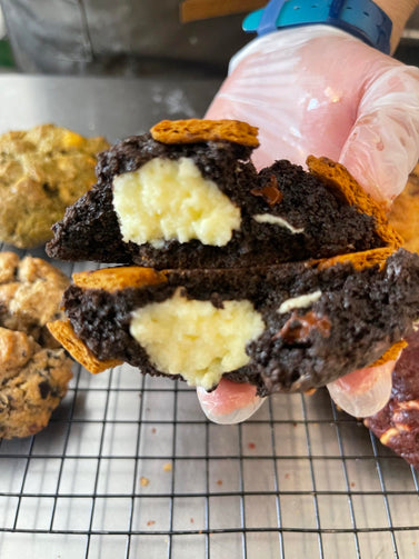 For the ultimate chocolate and graham lover, these cookies are packed with intense cocoa and generous chunks of graham with cream cheese filling.